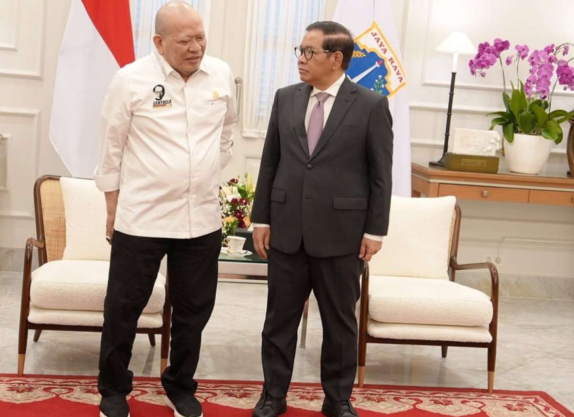 Jakarta, LNM – Anggota DPD RI yang juga Ketua Umum Pengurus Besar Muaythai Indonesia (PBMI) AA LaNyalla Mahmud Mattalitti bersilaturahmi menemui Gubernur DKI Jakarta Pramono Anung di Balai Kota Jakarta, Senin (19/1/2026).